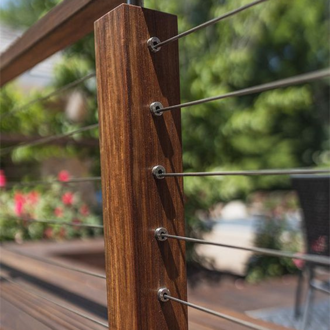 This cable railing system features sleek stainless steel cables and minimalist posts, offering a clear view and modern elegance. Its clean lines and durable design ensure both safety and style for any setting.